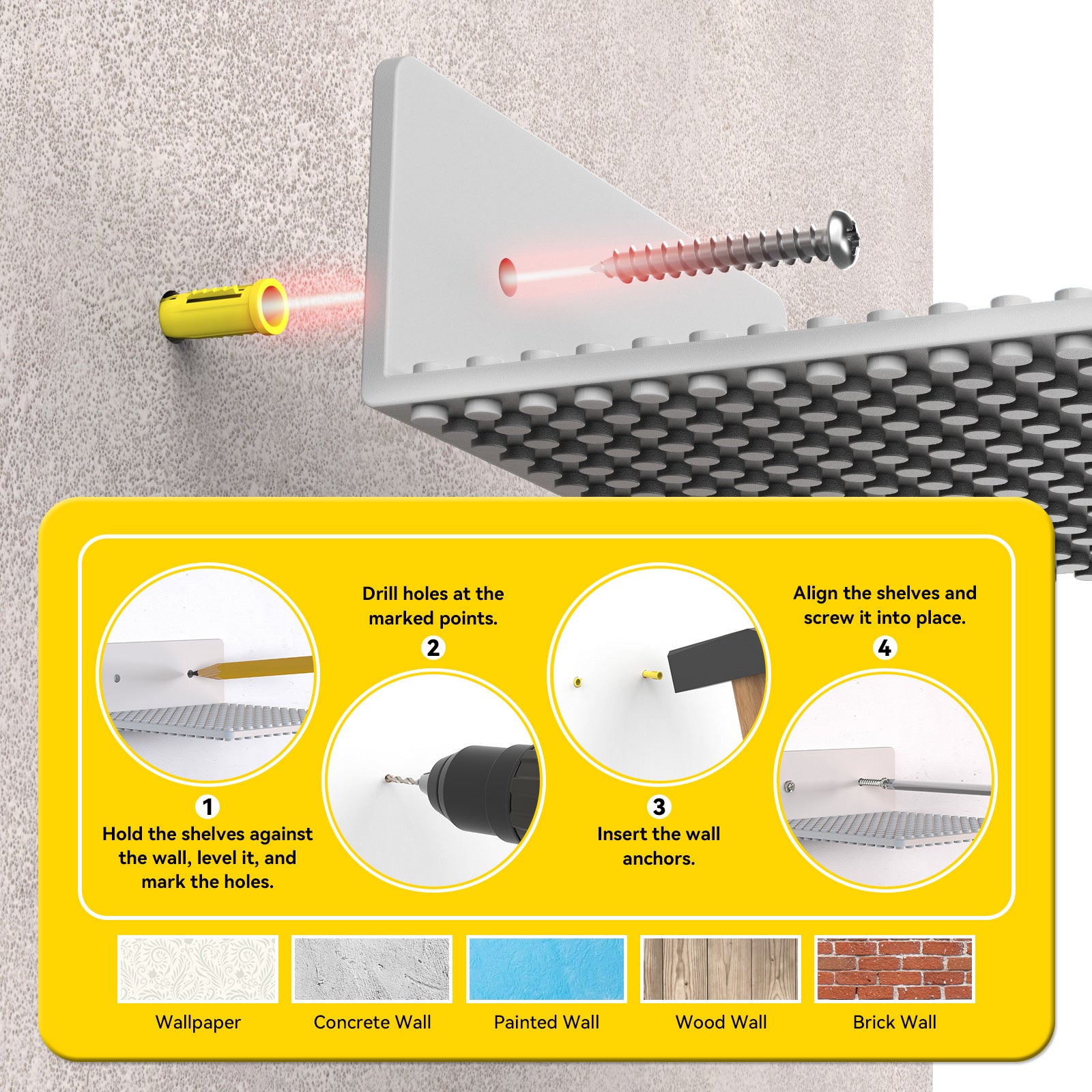 Crafted from high-strength ABS, these shelves for room wall not only look great but also hold up to 5.5 lbs without bending or breaking—perfect for long-term block storage and secure display.