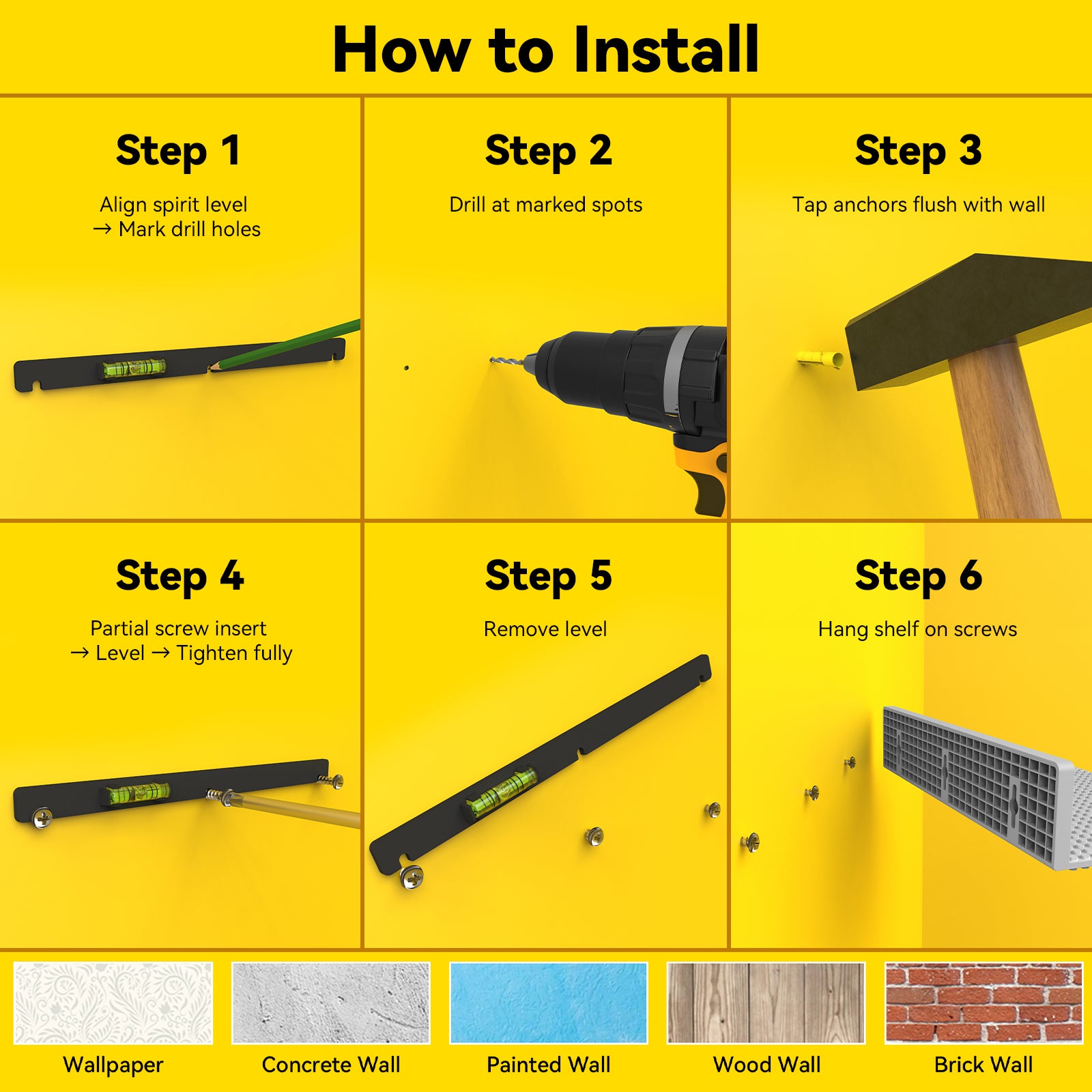 These floating shelves feature pre-drilled holes and include screws, wall anchors, and a free level tool, making setup quick and straightforward. Even those new to DIY can complete the installation with ease.