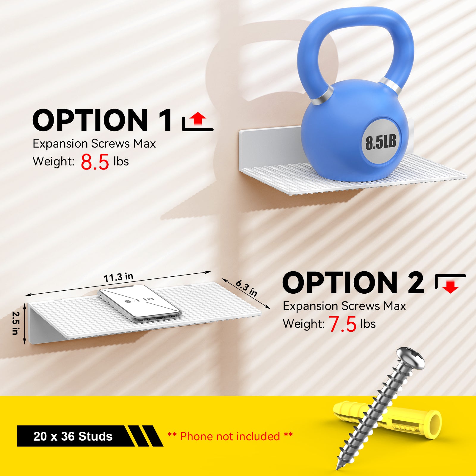 Don't let the minimal look fool you. Reinforced with high-grade ABS and secured via expansion screws, this mount boasts a max load of 6.5 lbs (approx. 3 kg). From heavy Technic cars to your daily gear, it holds firm without bending.